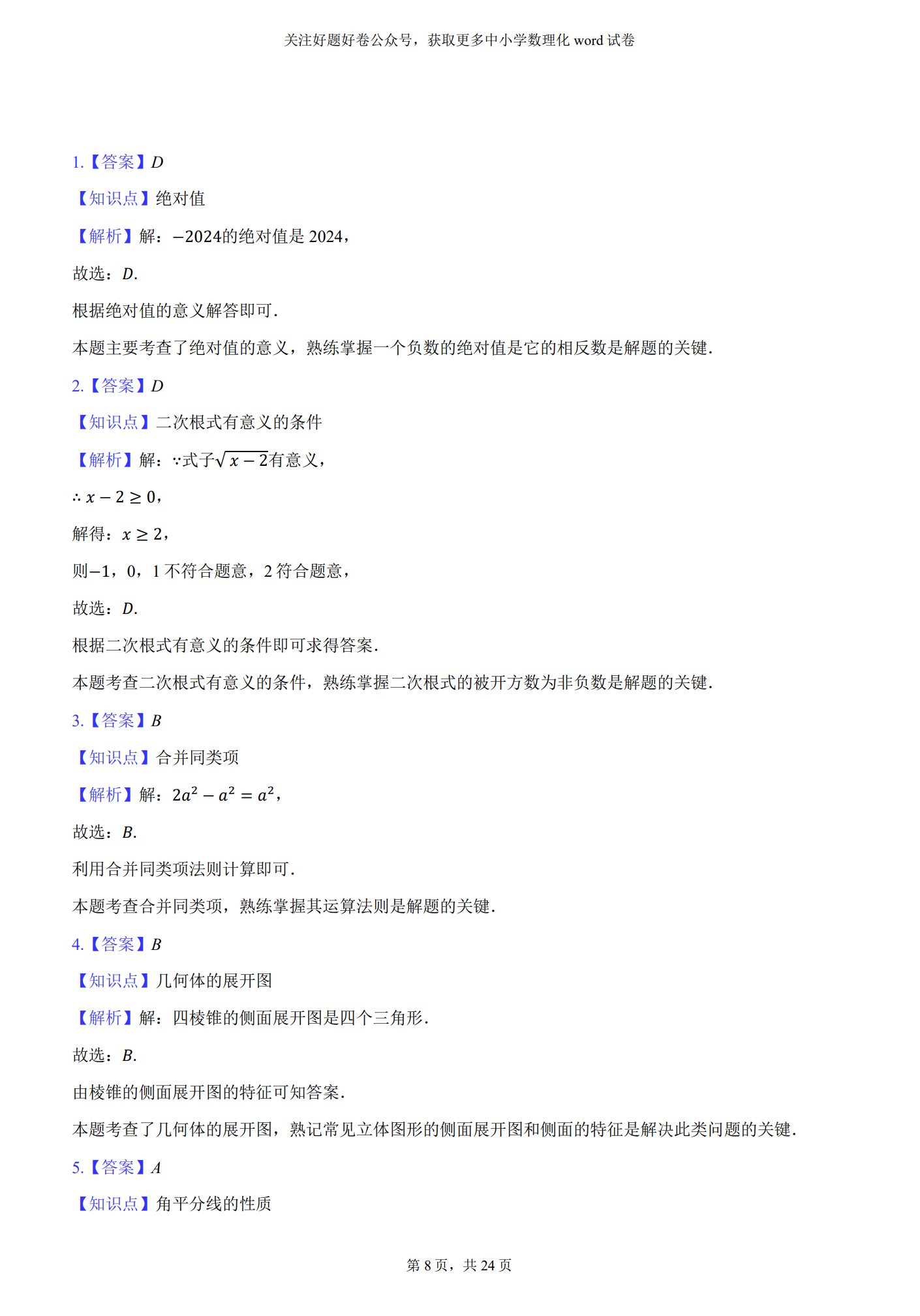 分享一份来自江苏省常州市中考数学word试卷,2024年江苏省常州市中考数学word试卷,试题内容展示,篇幅有限,答案展示部分,需要电子word版试卷及答案,微信搜索:小虫绘本,留言发送2024海南,可获得完整电子word版试卷及答案。